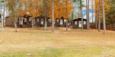 Cabins are open floor plan. Cabins face the lake.